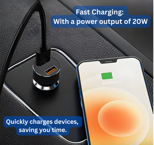 Car Charger 20W with USB-C & USB-A Ports for Fast Charging
