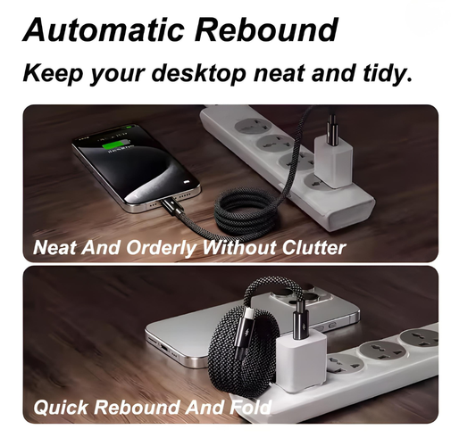 66W Magnetic Coiled USB-C to USB-C Cable (1M) | Fast Charge Braided Sync Cord