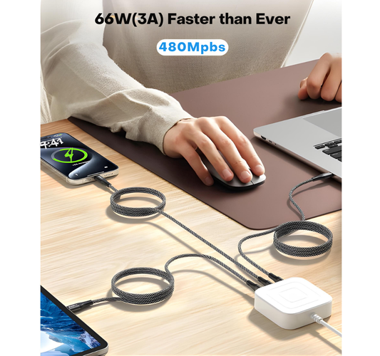 3-IN-1 Multi-Head USB Charging Cable - 1 Metre (100W)