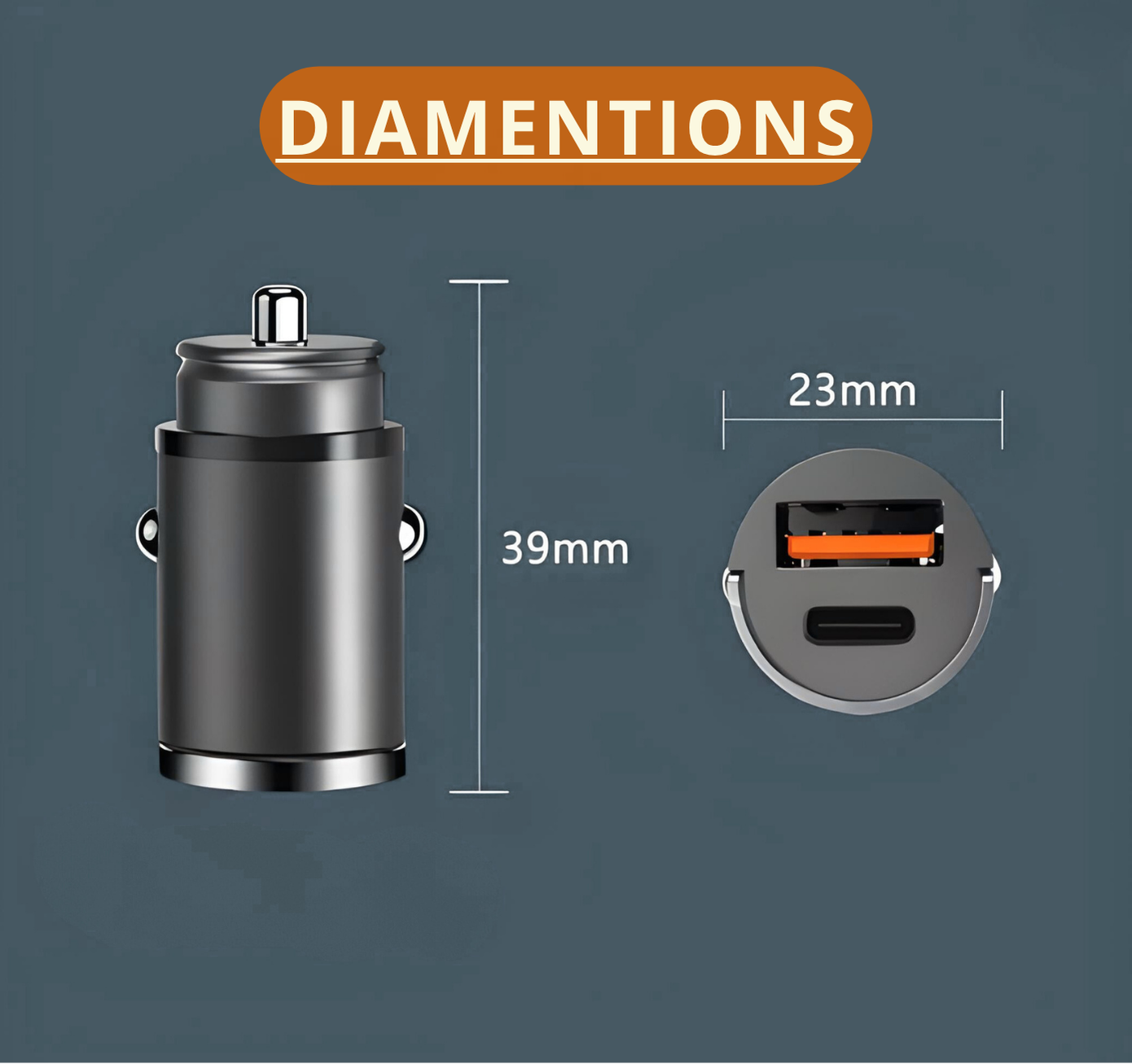 Car Charger 20W with USB-C & USB-A Ports for Fast Charging